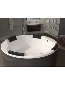Grande baignoire ronde offrant une assise pour 2 à 4 personnes;;