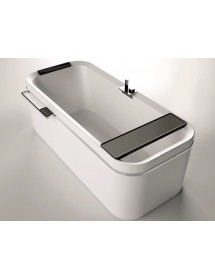 • Équipement et matériel: robinetterie à trous au bord de la baignoire ou montage au sol, châssis et tablier, rebord en acier inoxydable, plateau porte objet, étagère porte objets bord baignoire, hydromassage Airpool à jets d’air avec commande tactile soft-touch en bord de la baignoire.