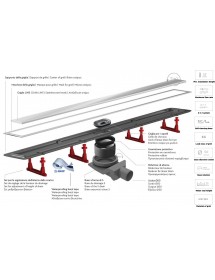 Caractéristiques :• Hauteur d'installation minimale - 62 mm• Débit maximum : 48 l / min• Grille réglable en hauteur - 5-20 mm• Base S autonettoyante rotative à 360 degrés• Aucune pièce en plastique visible• Conception unique et minimaliste de la grille• Poids supporté : 300 kg• Finition : grille...