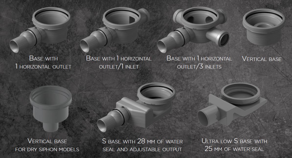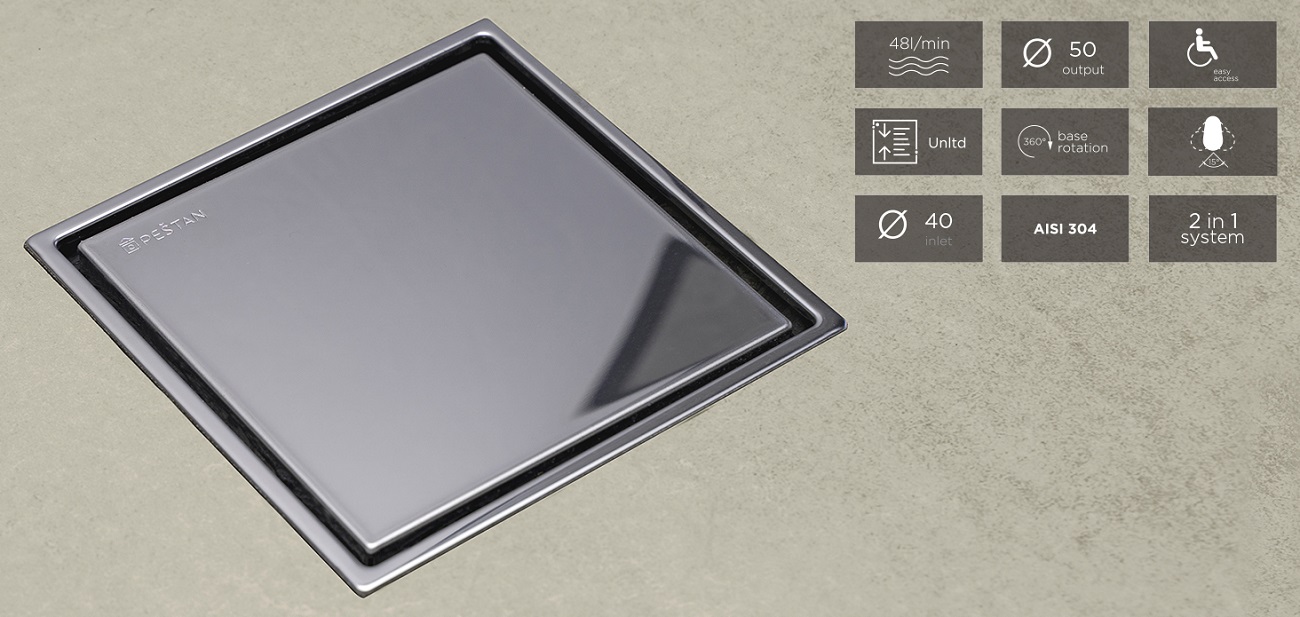 PEŠTAN propose plus de 150 différents modèles de CONFLUO drains, siphons de sol standards. Tous les modèles ont un corps fait en plastique et grille en en acier inoxydable ou en verre, que nous livrons dans divers dessins et tailles avec les accessoires complets et set pour protection pendant la coulée du sol en béton.