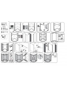 Parois de douche semi-circulaire d’angle universelles; parois de douche ¼ de cercle, accès angle avec deux portes coulissantes et deux panneaux fixes. Verre transparent épaisseur 6 mm tempéré (verre de sécurité). La paroi n’est pas proposée en commande sur mesure. Paroi d’angle avec deux portes coulissantes et deux panneaux fixes. Profilé aluminium chromé. Système de verrouillage magnétique.